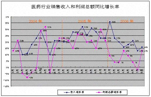 進入2006年以來,相繼發(fā)生了一系列涉及醫(yī)藥產(chǎn)業(yè)的重大事件和國家相關(guān)政策調(diào)整,為緩解“看病難、看病貴”國家發(fā)改委繼續(xù)高頻度發(fā)布藥品降價令和國家八部委聯(lián)合在全國范圍內(nèi)掀起打擊藥品購銷中商業(yè)賄賂風暴;SFDA頒布對藥品商品名的限制性措施;針對“齊二藥”、“欣弗”和“魚腥草注射液”等藥品安全事件,政府在藥品生產(chǎn)、注冊等領(lǐng)域的監(jiān)管措施也趨于更加嚴厲;醫(yī)療機構(gòu)的“掛網(wǎng)招標”、“藥房托管”和“政府直接采購”等改革試驗在全國各地相繼展開。大變革、大沖擊、大動蕩是對當前中國醫(yī)藥行業(yè)的真實寫照。統(tǒng)計表明,全國醫(yī)藥制造業(yè)銷售與利潤增速雙雙回落,產(chǎn)值增速近20年來首次低于GDP的增長,并利潤一度出現(xiàn)負增長。