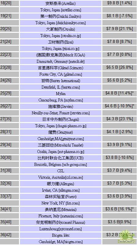 2009年全球50家優(yōu)秀醫(yī)藥公司