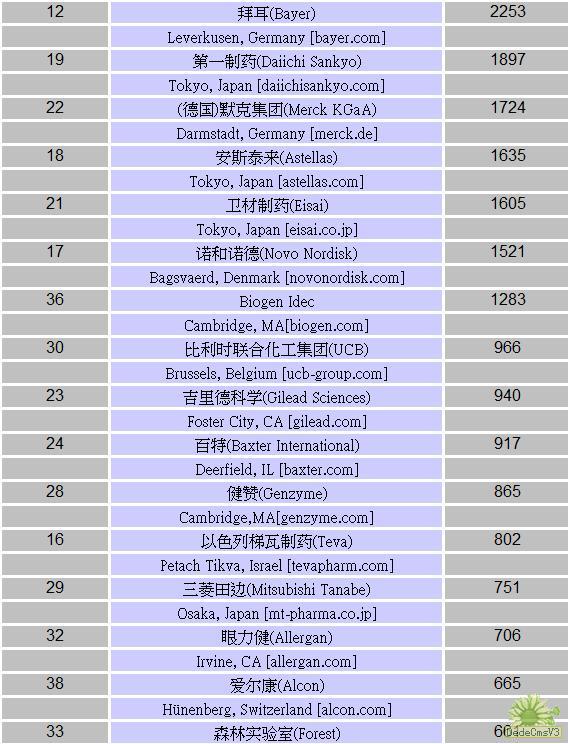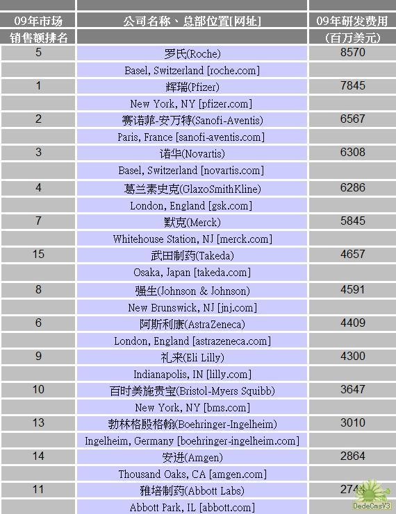 2009年全球優(yōu)秀醫(yī)藥公司研發(fā)費(fèi)用